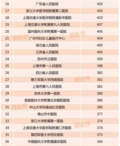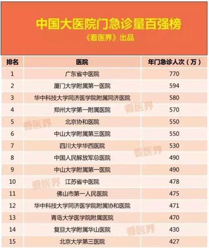 2017,中國(guó)大醫(yī)院門診量百?gòu)?qiáng)榜