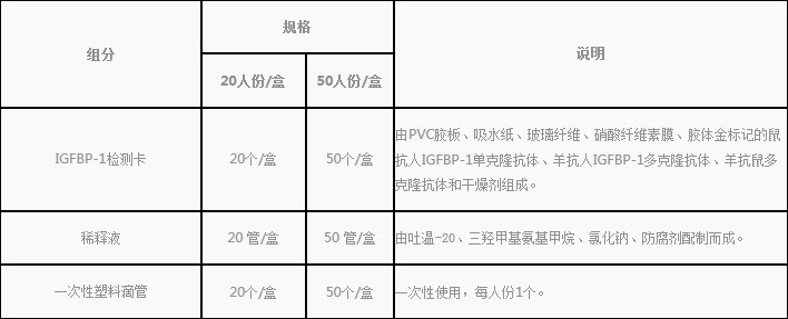 用于體外定性檢測(cè)孕婦陰道分泌物中的胰島素樣生長(zhǎng)因子結(jié)合蛋白-1(IGFBP-1)。